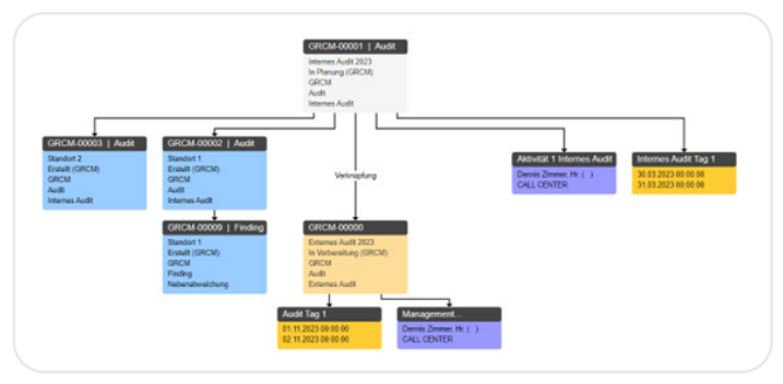 Starten Sie in eine transparente Auditplanung. Der neue Ticket-Typ „GRCM-Audit“ erlaubt es, die ganze Hierarchie eines internen Audits darzustellen und zu verwalten.