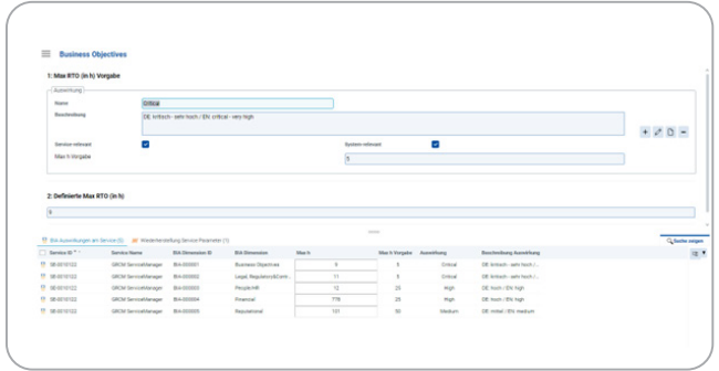 Welche Downtime wäre kritisch? Mit der Business Impact Analyse können Sie Ihre Services mit Vorgabe-Informationen anreichern und diese Vorgaben dann auch