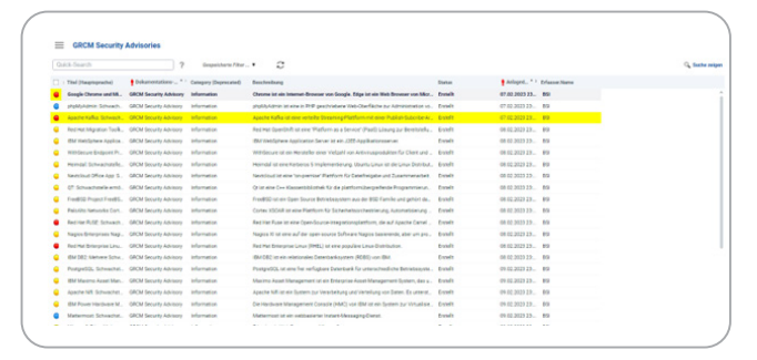 Integrieren Sie Meldungen aus digitalen Schwachstellen-Quellen vollautomatisch mittels eines GRCM-Prozesses. Die Meldungen können dann direkt mit einen Business Service als Service-Dokumentation verlinkt werden.