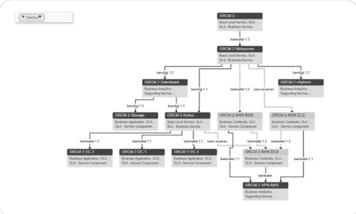--> Einfache Berechnung und Prüfung der erreichbaren Compliance-Werte aus der Service Hierarchie (z. B. Wiederherstellungszeit) und Vergleich mit den Vorgaben