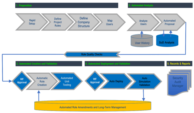 The best practices sewn into the tools come to the rescue, allowing the necessary roles to be built efficiently and tailor-made. This allows job roles to actually meet specific business needs without generating excessive accesses.